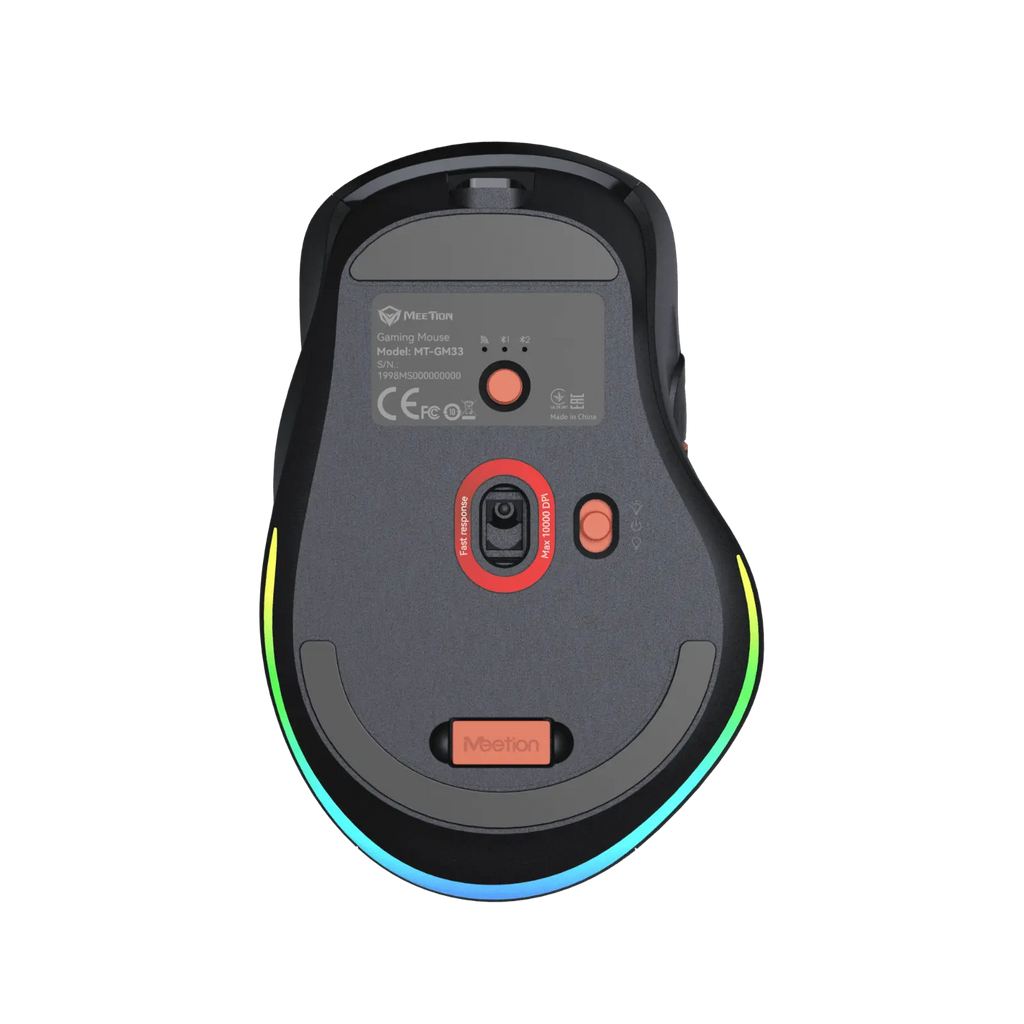 Introducing the Meetion GW32, an ergonomic gaming mouse tailored for right-handed gamers. It features the advanced PAW3220 sensor with up to 8000 DPI and a 1000Hz polling rate, ensuring precise tracking and ultra-low latency for impeccable performance. The GW32 boasts a durable 20 million click lifespan and customizable RGB lighting, blending style with functionality. Its 700mAh battery offers remarkable longevity, providing up to 35 hours of use with lights on and an impressive 115 hours with lights off. Designed for comfort and control, the mouse includes dual scroll wheels and an ergonomic shape, making it perfect for extended gaming sessions. Multiple connectivity options—2.4G, BT1, BT2, and USB—provide versatile compatibility with various devices. Weighing just 98g (excluding cable), the GW32 is lightweight and easy to maneuver. Complete with Meetion's exclusive driver for full customization and compatible with Windows 10/11, the GW32 is the ultimate gaming companion, combining precision, style, and flexibility.