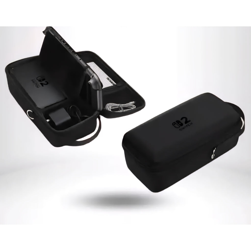 Protective case designed for Nintendo Switch 2. This hard shell case combines durable EVA and PU materials to provide scratch-resistant, dust-proof, and splash-resistant protection. The 1:1 precision molding ensures a perfect fit without affecting joystick functionality. Features include a built-in charging dock (requires separate charger), storage compartments for TV Dock, Pro controllers, Joycon, HDMI cables, and a removable stand for tabletop gaming. The interior soft lining prevents screen scratches while the ergonomic design offers a comfortable grip. Compact yet spacious, it accommodates the console and all accessories for easy travel.
