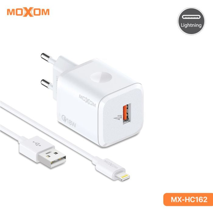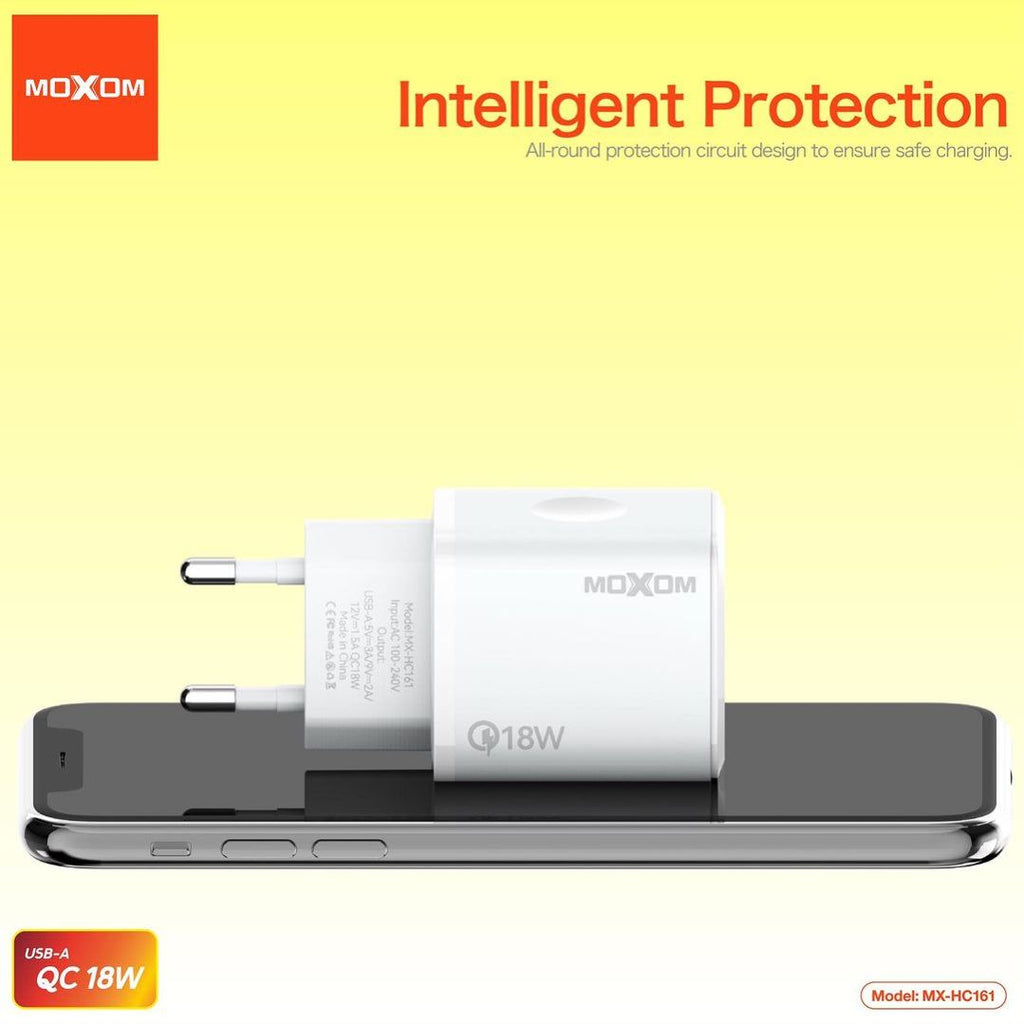 The MOXOM MX-HC162 is an 18W USB-A wall charger designed for fast charging mobile devices. It is a compact, travel-ready adapter featuring intelligent protection to prevent overcharging.